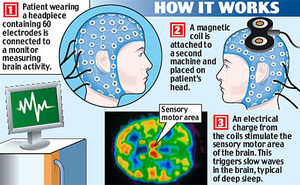 Scientists have invented a technique which they say could help trigger deep sleep in the most chronic insomniac.Harmless magnetic pulses? Yow!Using medical equipment, they stimulated the brain with harmless magnetic pulses.